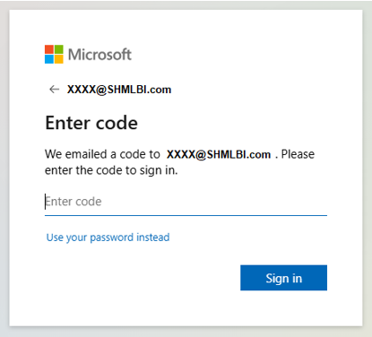 5. Enter the code sent by Microsoft and click “Sign In”: